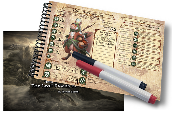 Laminated character sheets allow you to easily keep track of health, loot, and spent abilities.